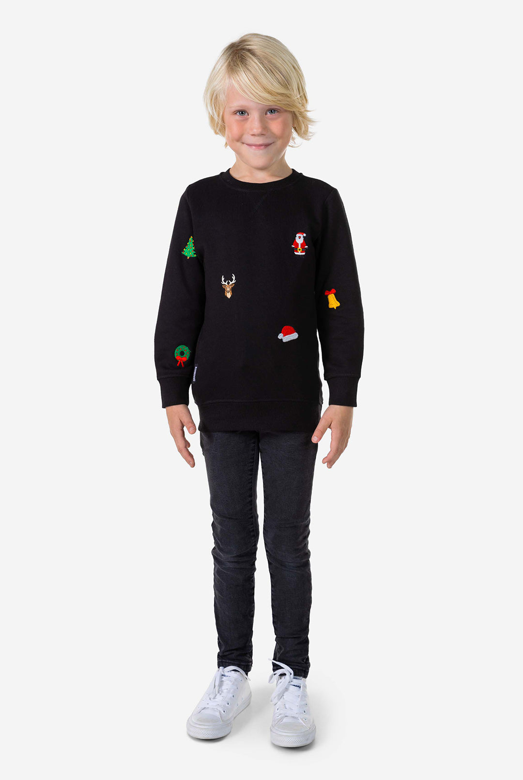 Mit diesem stilvollen X-Mas Icons Pullover werden Sie ein fröhliches und glückliches Weihnachten erleben. Dieses stylische Stück in Schwarz ist mit Schneemännern, Lebkuchen und Zuckerstangen bedeckt und ist somit ein sofortiger Gewinner auf der nächsten Familienweihnachtsfeier! Wenn Sie auf der Suche nach einem bequemen und lässigen Weihnachtslook sind, den Ihr Kind lieben wird, ist dies der richtige Pullover für sie.