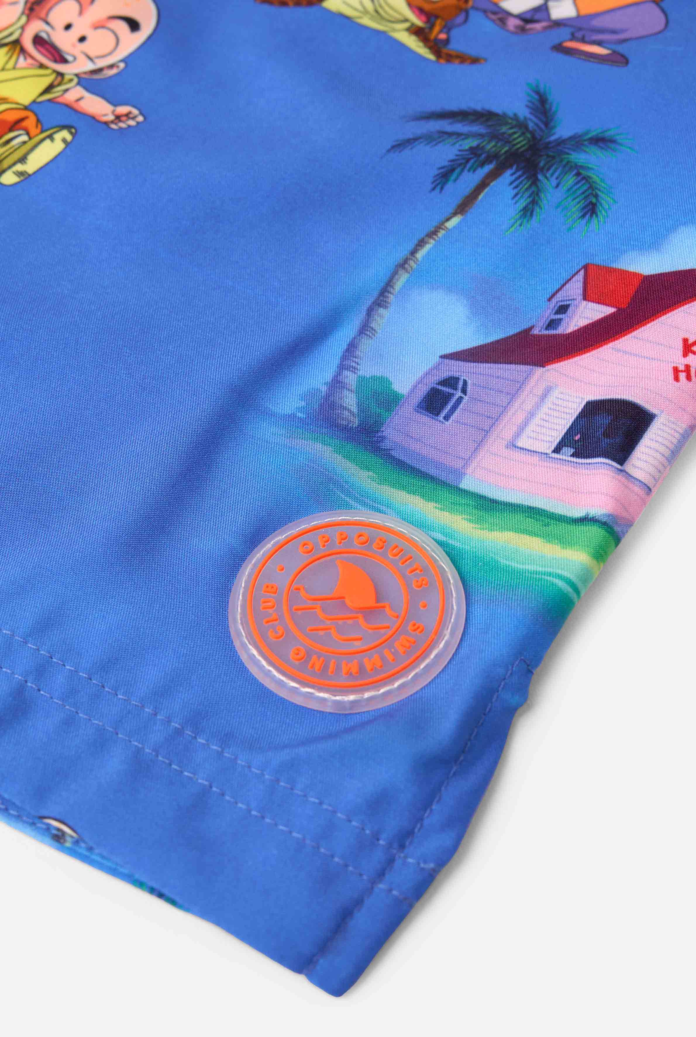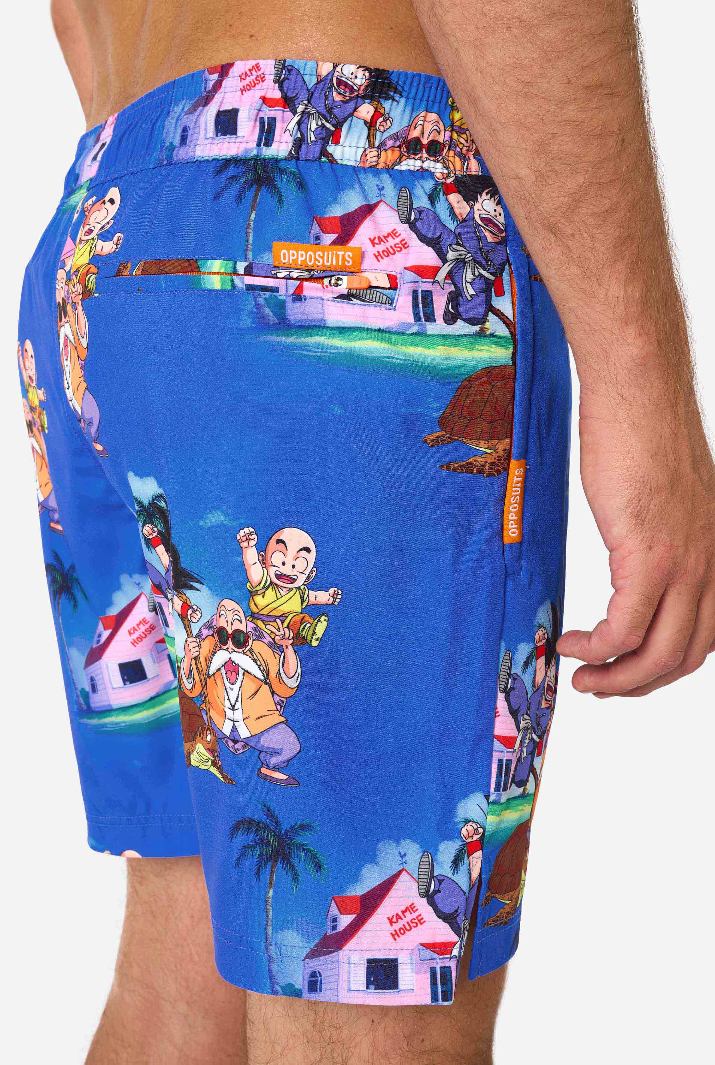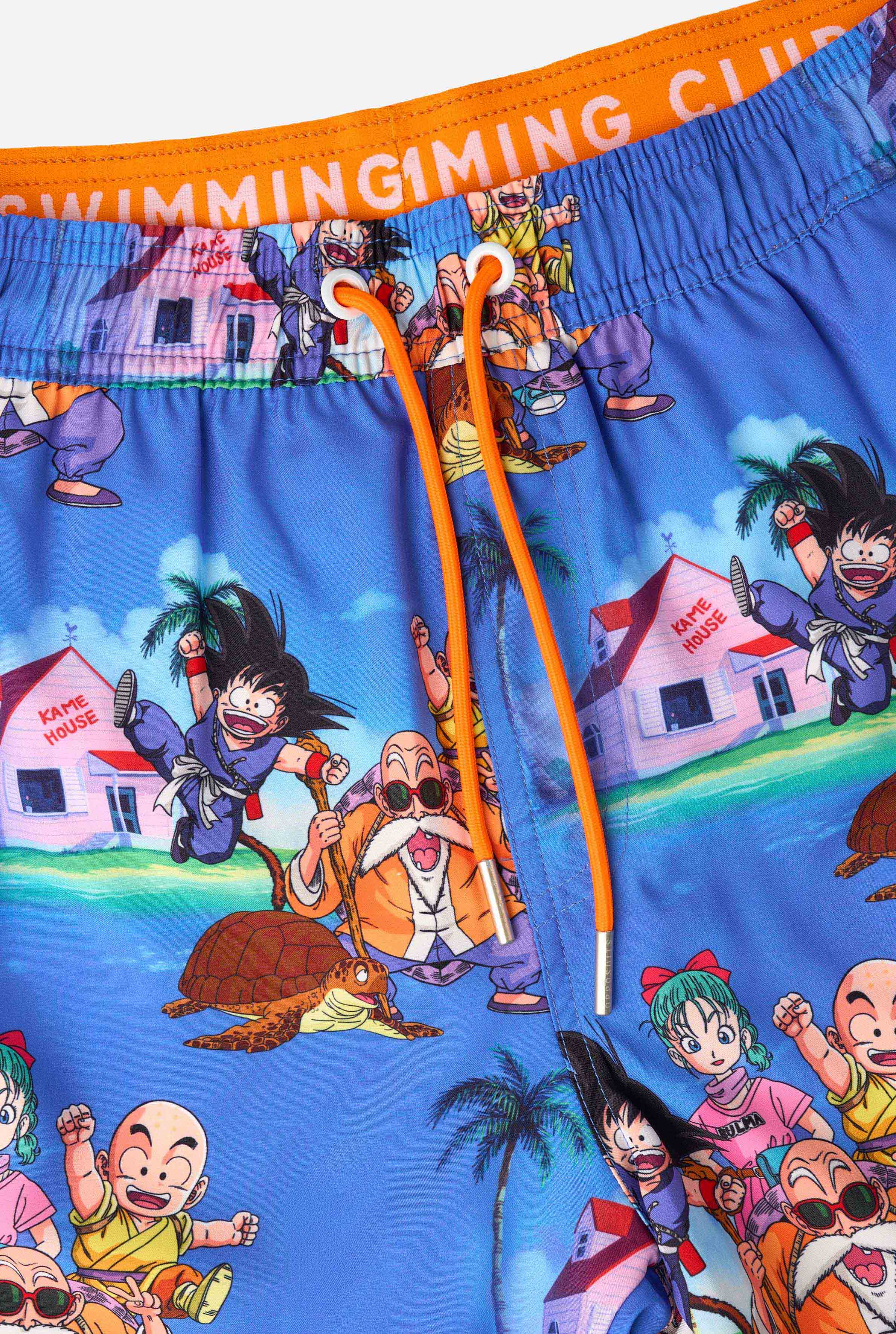 The Kame House Swim Shorts bring Dragon Ball vibes and island relaxation to every splash.