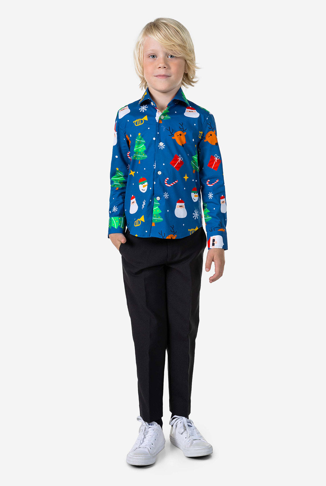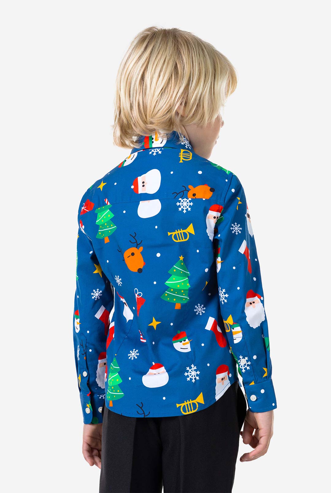 Möchte Ihr Kind in dieser Ferienzeit besonders cool aussehen und auffallen? Dann ist das blaue Festivity-Shirt genau das Richtige. Es zeigt den Weihnachtsmann, Rentiere, Tannenbäume und glitzernde Sterne und lässt sich daher perfekt mit einem Anzug kombinieren. Alles, was es braucht, ist, dass du es trägst!
