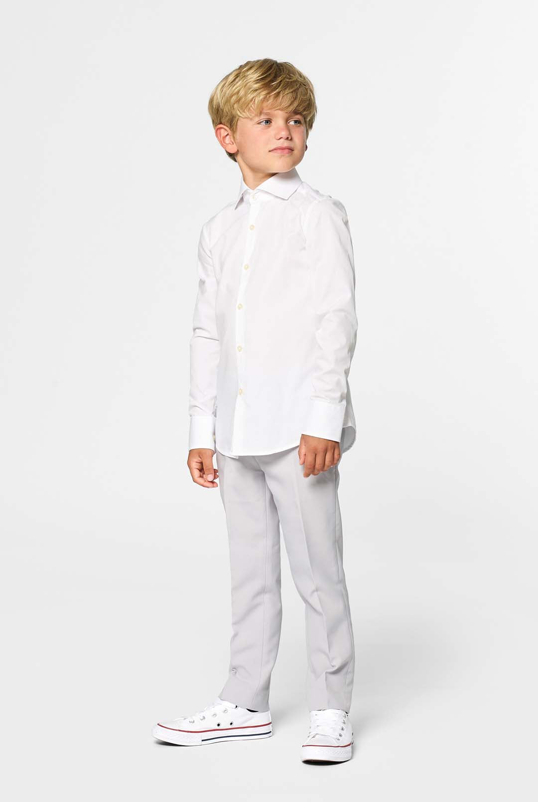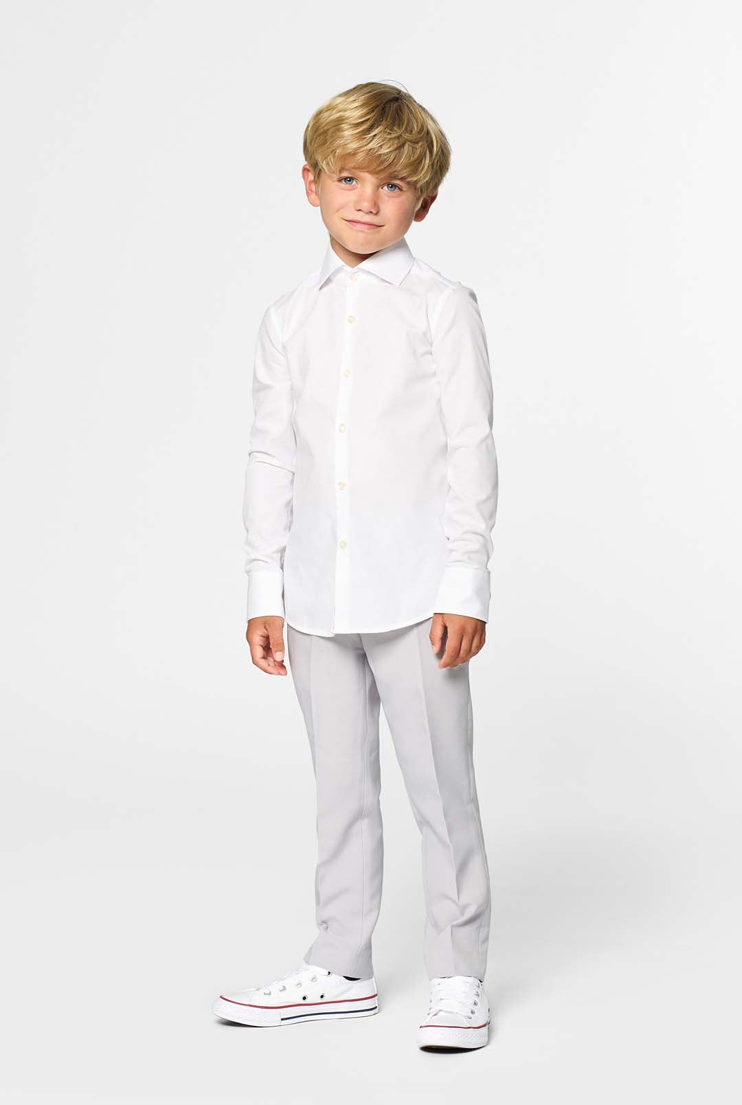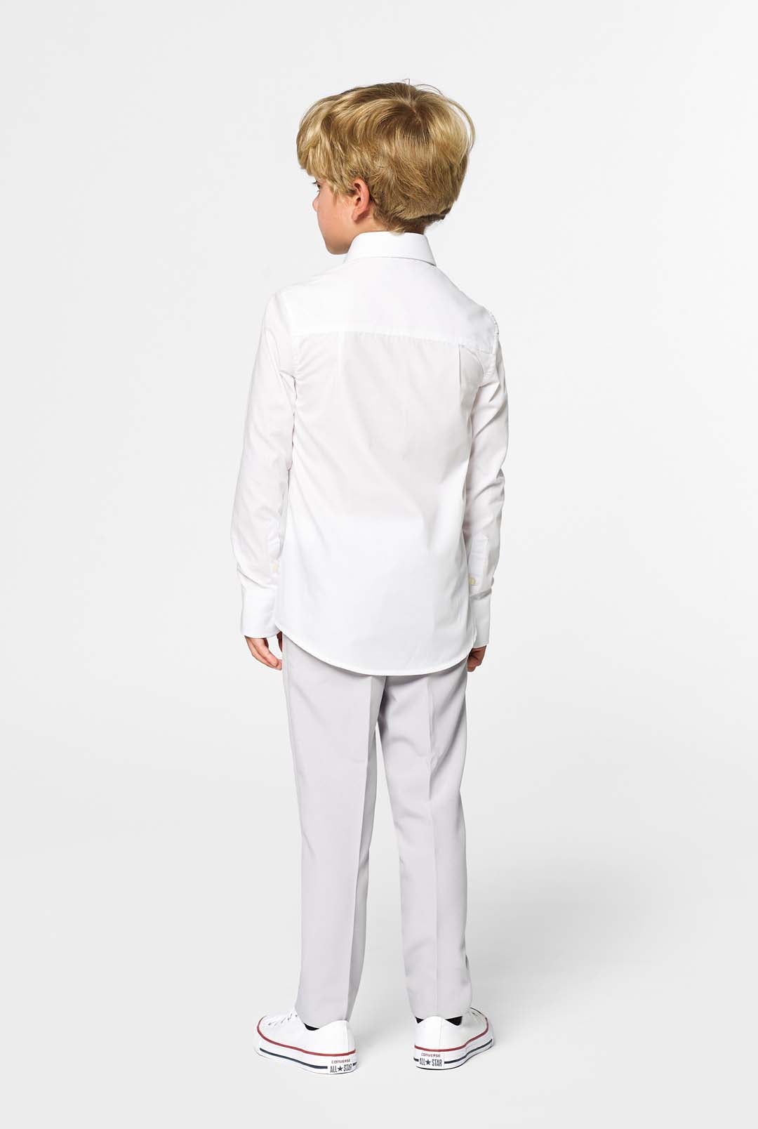 Suchst du ein Shirt um das Outfit deines kleinen Gentleman zu vervollständigen? Dieses weiße Kindershirt wird Charme und Raffinesse zu seinem Look hinzufügen. Es ist das ideale Kleidungsstück passend für jeden Anzug egal ob klassisch oder mutig. Außerdem ist das Kindershirt lang genug um in die Hose gesteckt zu werden und bleibt dort selbst beim umherrennen, da es speziell designet wurde um mit einem Anzug getragen zu werden.