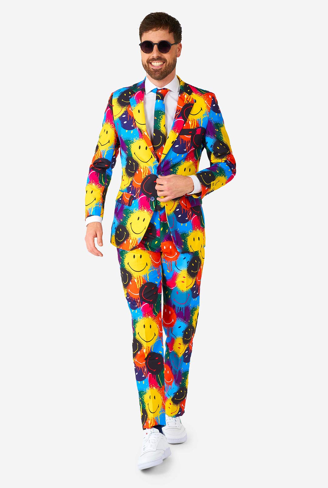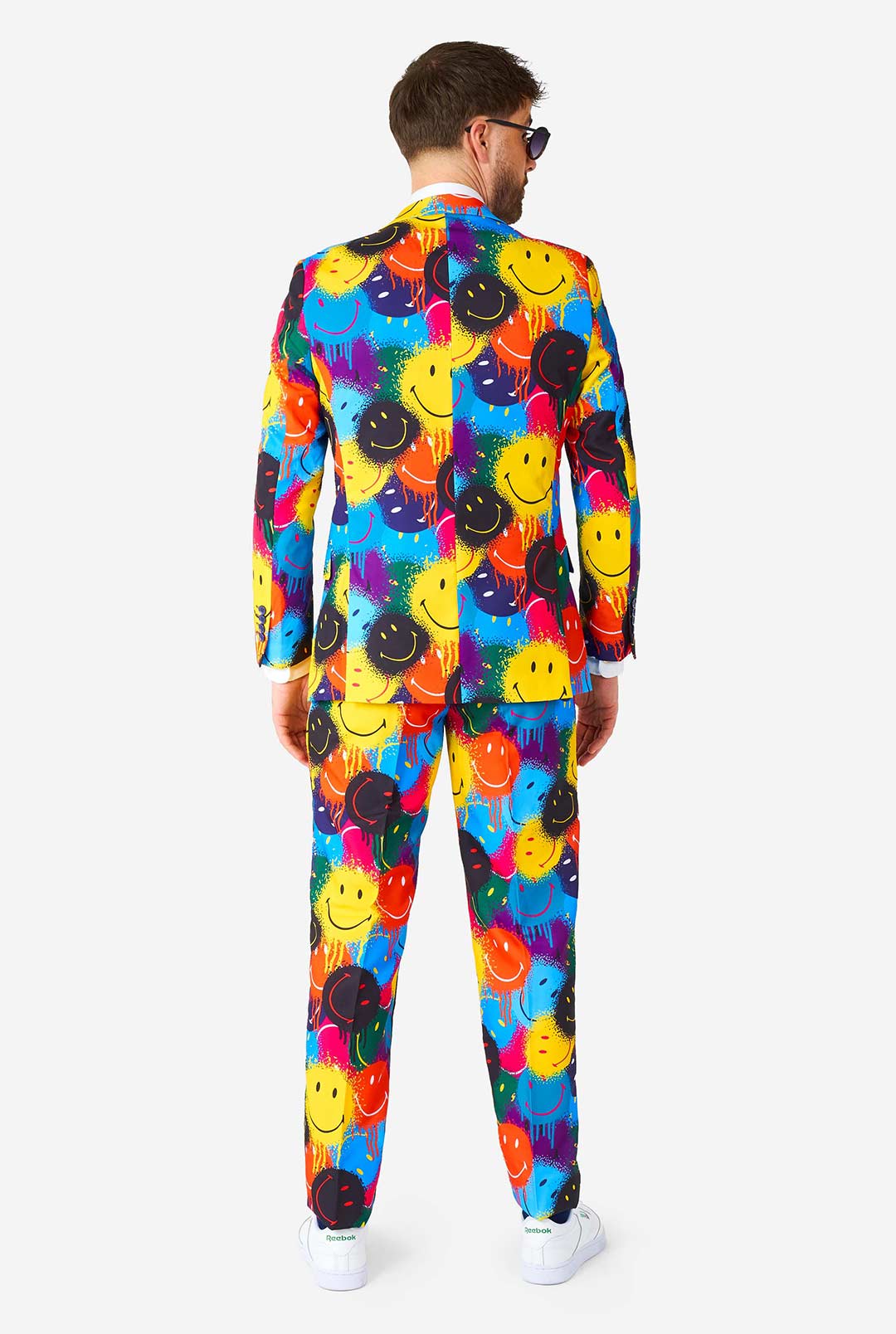 Reden wir nicht um den heißen Brei herum. Der Smiley® Tropfanzug ist kühn, stylisch und erzählt eine Geschichte. Wenn Sie sich wie eine Haute-Couture-Streetwear-Modeikone fühlen und aussehen möchten, ist dieser Anzug wie für Sie gemacht. Das ikonische Smiley®-Symbol funkelt auf jede farbenfrohe Art und hinterlässt ein Lächeln auf Ihnen und all Ihren Freunden, wenn Sie die Straße entlang gehen.